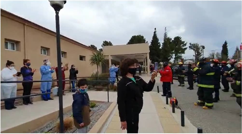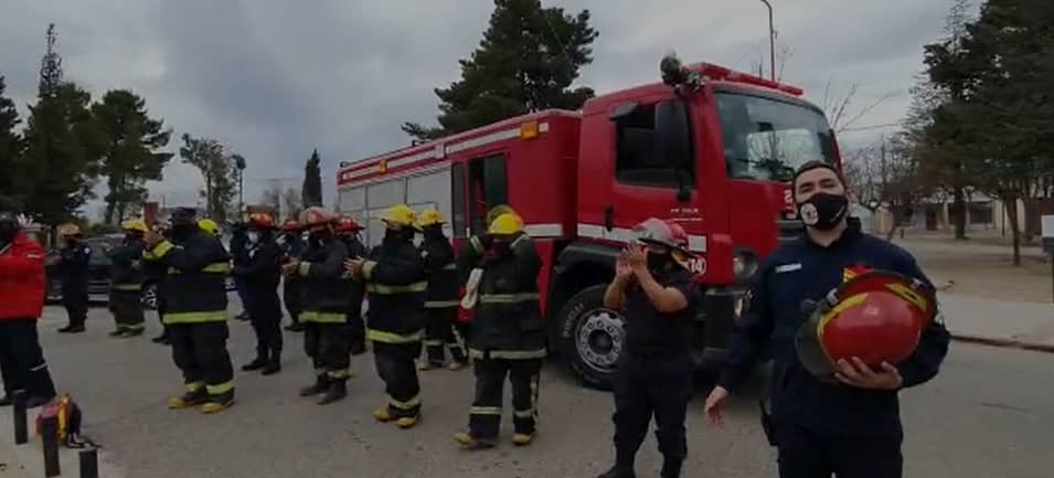 Los bomberos voluntarios de Plaza Huincul y Cutral Co brindaron un abrazo simbólico a las y los trabajadores de Sanatorio Plaza Huincul.