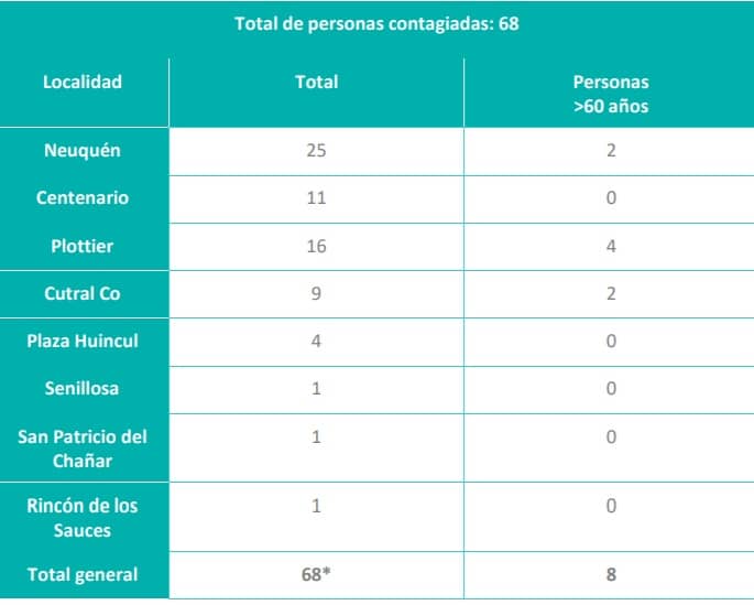 Al momento de este reporte, se notificaron 13 casos confirmados de coronavirus -Covid-19- 9 de los cuales son de Cutral Co y 4 de Plaza Huincul.