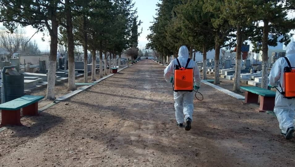 Una cuadrilla estuvo en esta semana para realizar tareas de desinfección en el cementerio de Plaza Huincul.