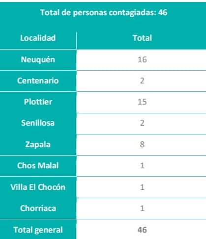 El primer parte del Comité de Emergencia Provincial no reportó casos de Cutral Co y Plaza Huincul. En la provincia, la cifra de confirmados es de 46.