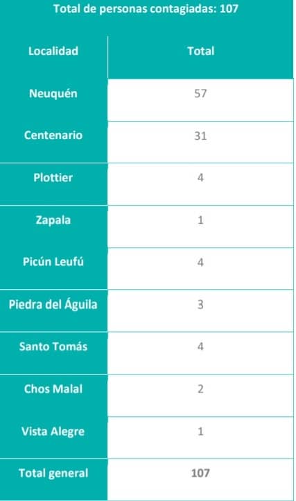 En el resto de la provincia se notificaron ciento siete (107) nuevas personas contagiadas de Covid-19.