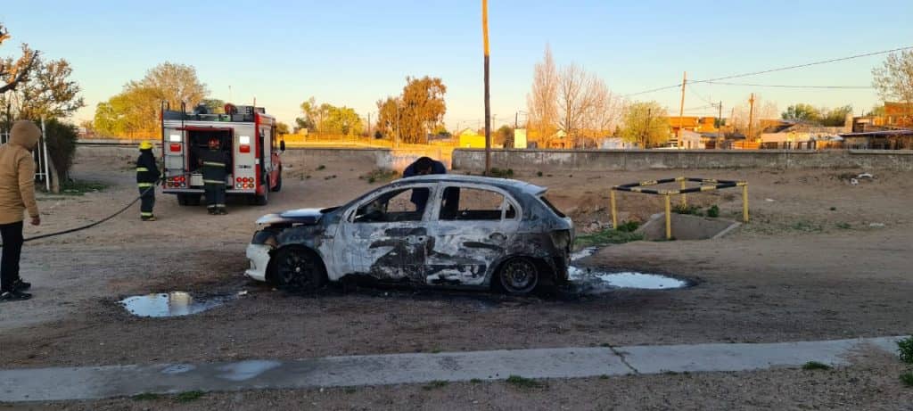Durante la mañana de este domingo los vecinos del barrio Unión pudieron divisar llamas en un vehículo sobre la calle Islas Malvinas entre Alem y Perito Moreno, a escasos metros del zanjón conector Zapala. Hasta allí acudieron bomberos voluntarios con 3 efectivos para combatir las llamas.