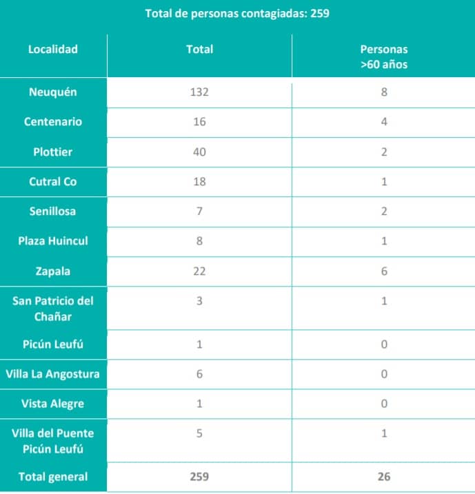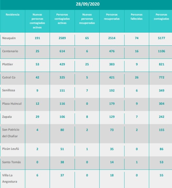 (COVID-19) de la provincia del Neuquén: 65 personas de Neuquén capital, 25 personas de