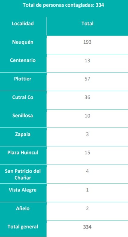 Son 36 casos de Cutral Co y 15 e Plaza Huincul, según se indicó.