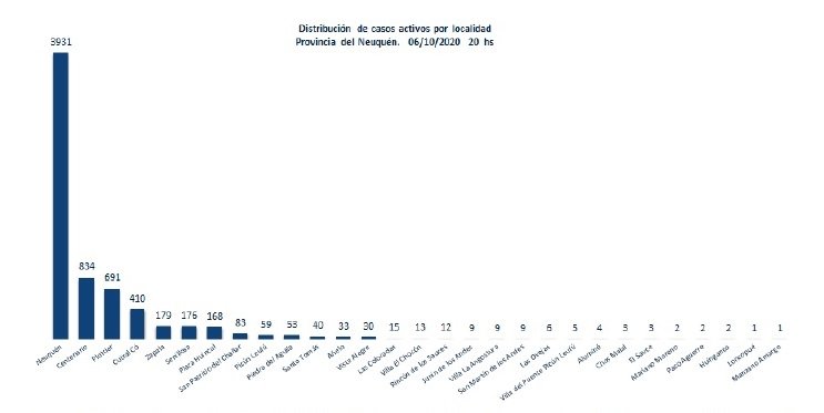 Los casos activos son 410 en Cutral Co y 168 en Plaza Huincul. Las personas fallecidas desde el comienzo de la pandemia son 43.