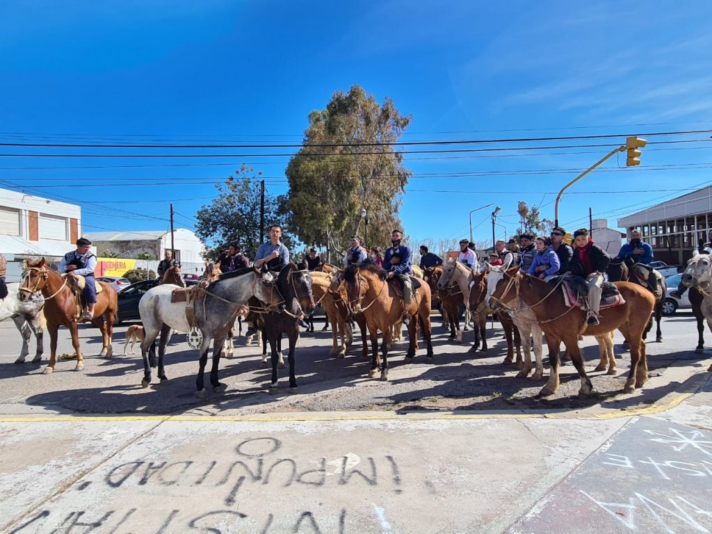 Los jinetes partieron desde la esquina de avenida San Martín y avenida Mariano Moreno en Plaza Huincul y continuaron hacia la plazoleta de El Reloj. Allí, entonaron el himno nacional argentino y luego se dirigieron frente al edificio judicial de JJ Valle para regresar al punto de partida.