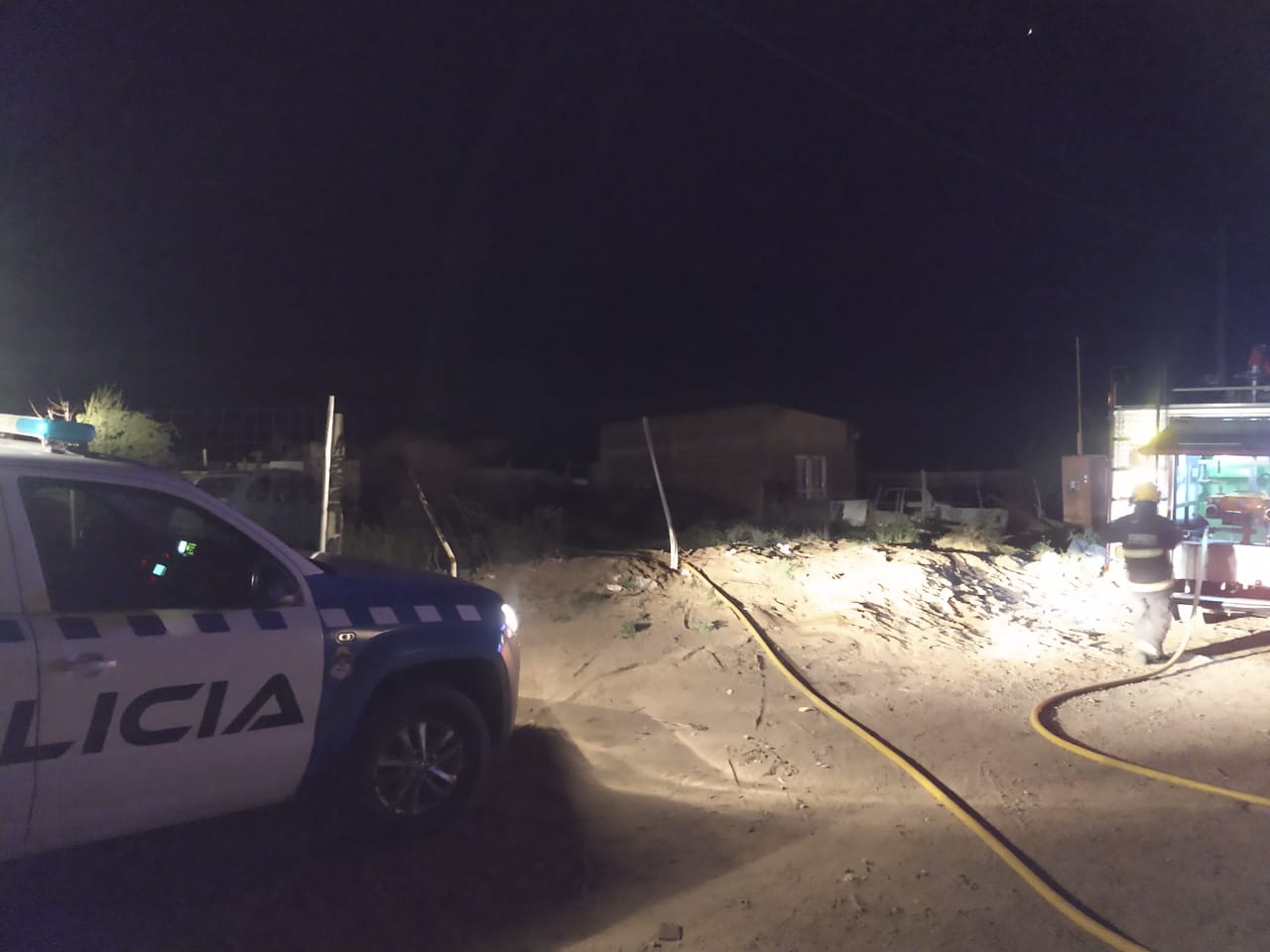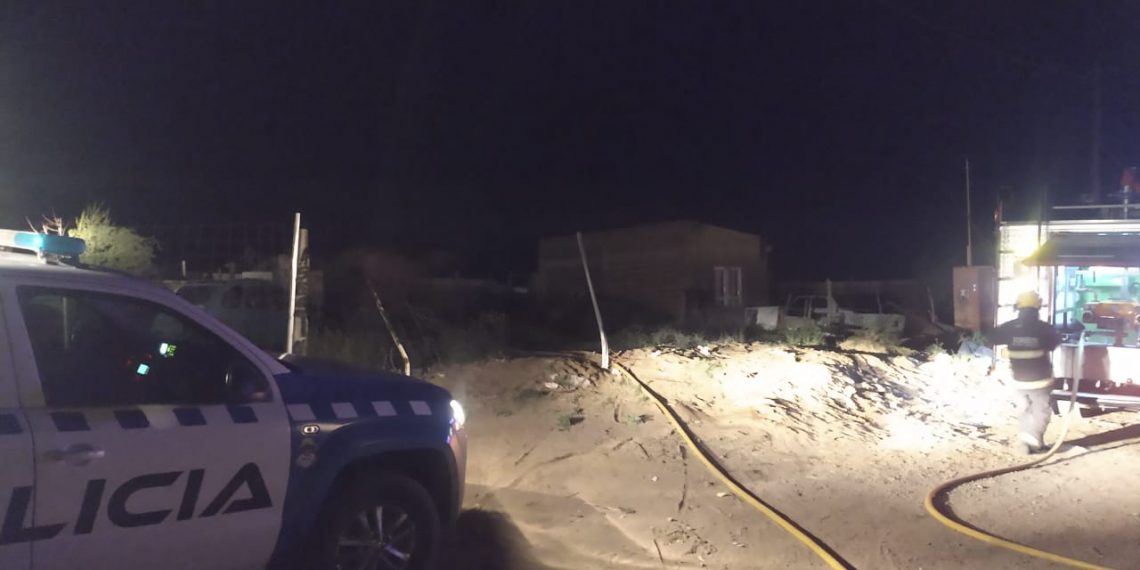 Los bomberos voluntarios de Plaza Huincul concurrieron para evitar la propagación de las llamas en una vivienda precaria en el barrio Noroeste.