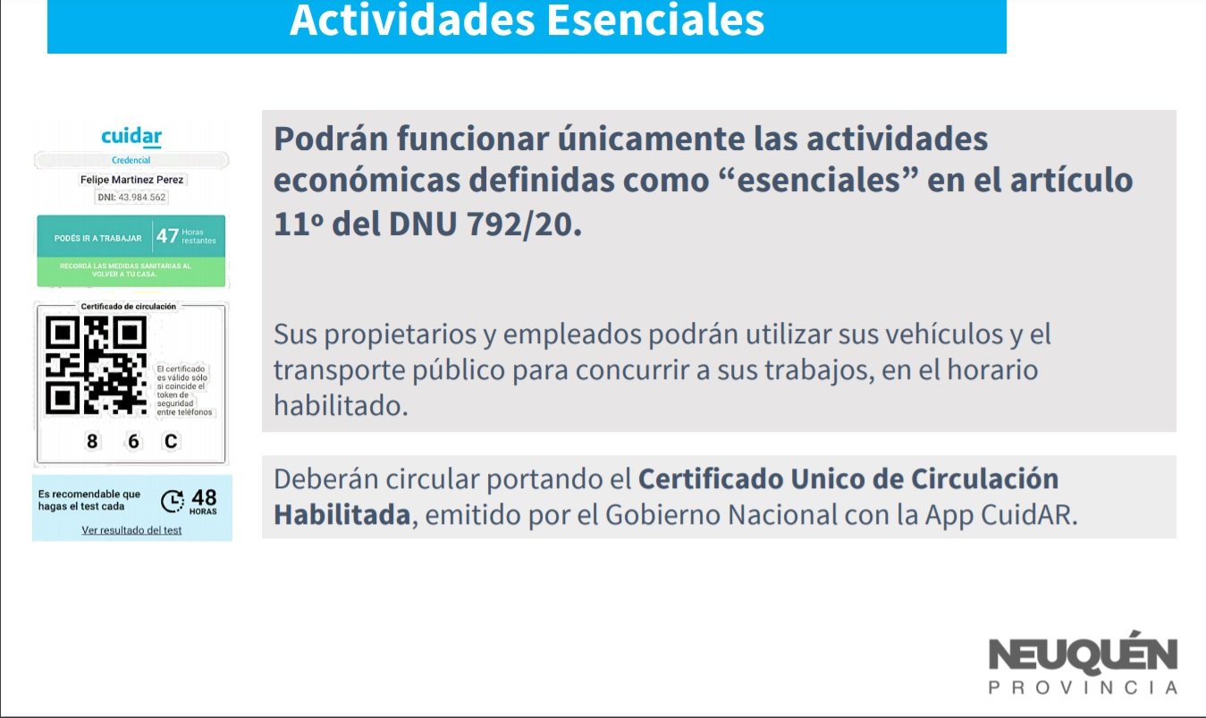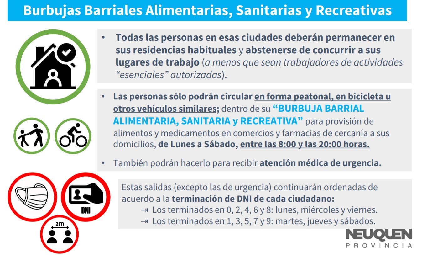 Están comprendidas las localidades con circulación comunitaria del virus. Neuquén, Plottier, Centenario, Senillosa, Cutral Co, Plaza Huincul y Zapala. El resto de las ciudades continuará como hasta ahora.