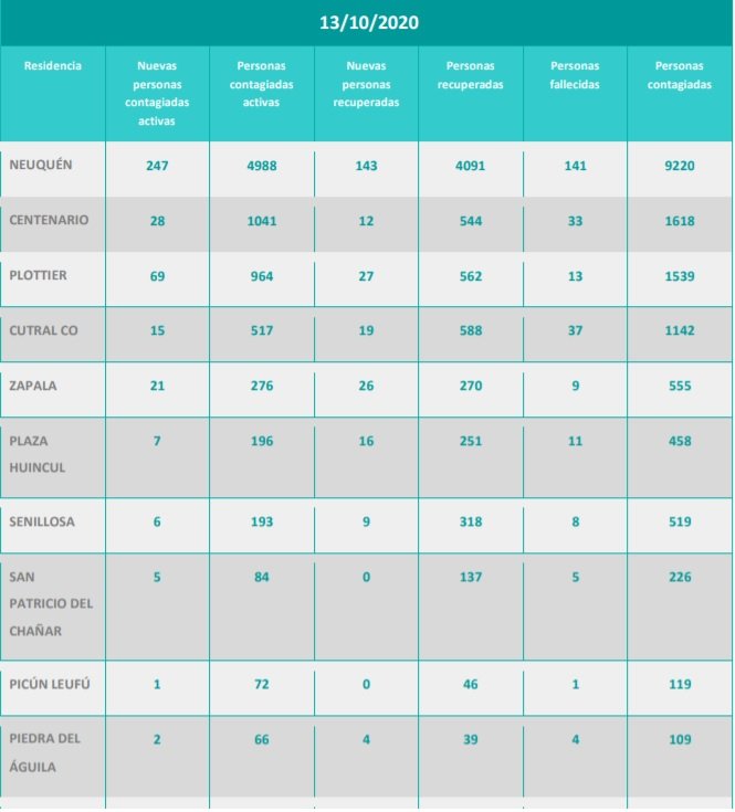 Los casos activos en Cutral Co son 517 mientras que en Plaza Huincul son 196, esto es 713. Las personas fallecidas son 48.