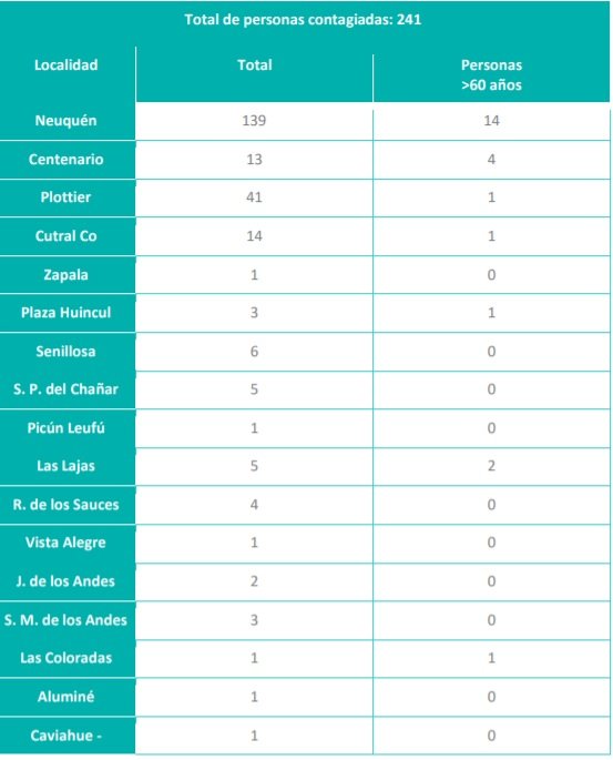 Coronavirus (COVID-19) de la provincia del Neuquén: 143 personas de Neuquén capital, 27