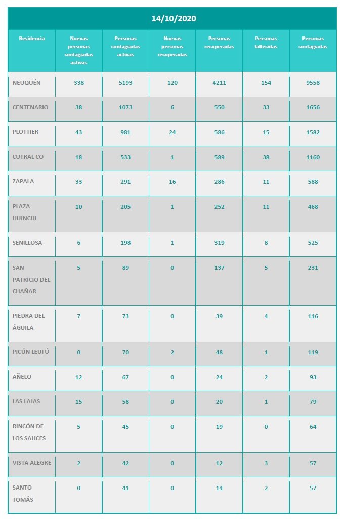 Además se informó que 18 personas de Cutral Co y 10 de Plaza Huincul supieron hoy que son pacientes con coronavirus. Hay 30 personas internadas con la enfermedad y 6 de ellas usan respirador.