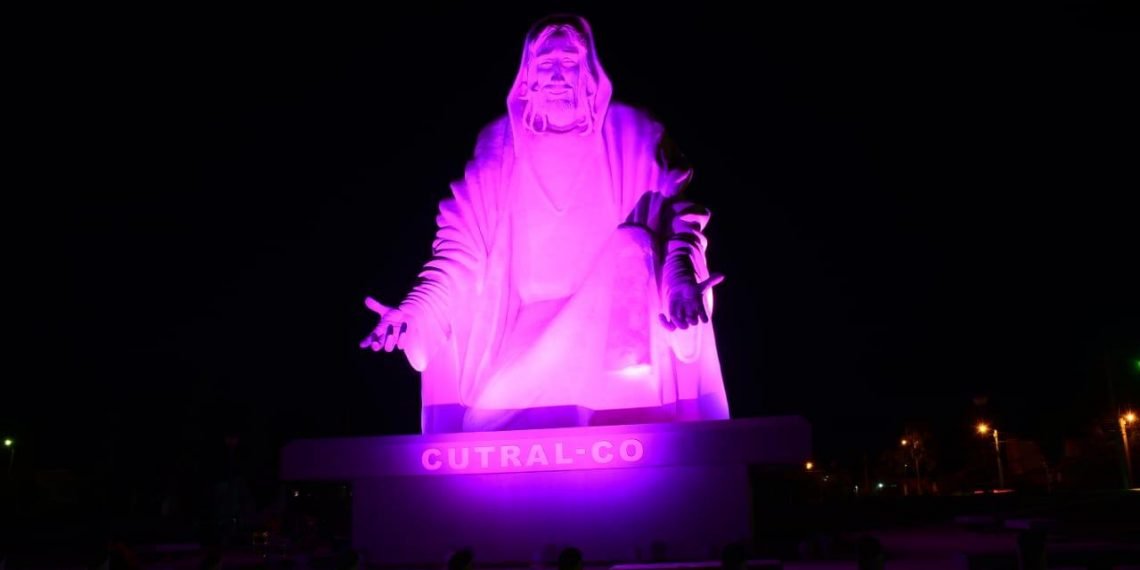 Octubre es el mes concientización del cáncer de mama, y en Cutral Co se acordó iluminar de color rosa o fucsia, que identifica la lucha contra esta enfermedad, uno de los monumentos más representativos de la ciudad.