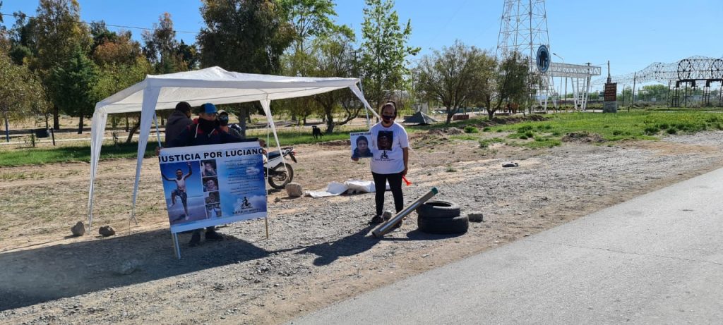 La madre de Luciano inició la protesta ayer en el acceso a Plaza Huincul a la espera de la audiencia de impugnación que definía la continuidad de la prisión preventiva para “Neneo” San Martín, el único imputado por el crimen del niño del barrio Peñi Trapún