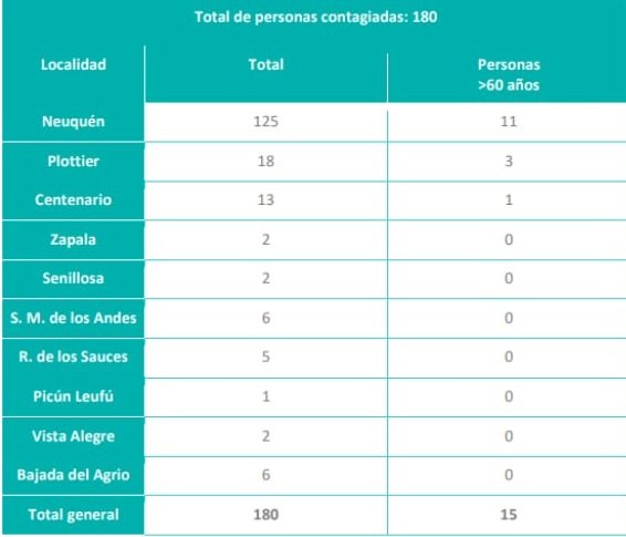 El primer parte del lunes da cuenta de 180 nuevas personas contagiadas de coronavirus (COVID-19) en la provincia del Neuquén.