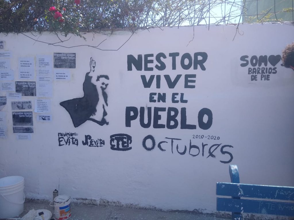 En mismo 27 de octubre se realizó una olla popular mientras se realizaron las tareas de pintado en una de las paredes de la plaza, con la leyenda “Néstor Vive en el Pueblo”.