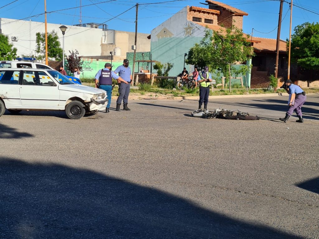 Un motociclista fue derivado en ambulancia hasta el hospital de Complejidad Media, después de colisionar con un automóvil en la esquina de Corrientes y Chubut, en el barrio Ruca Quimey de Cutral Co.