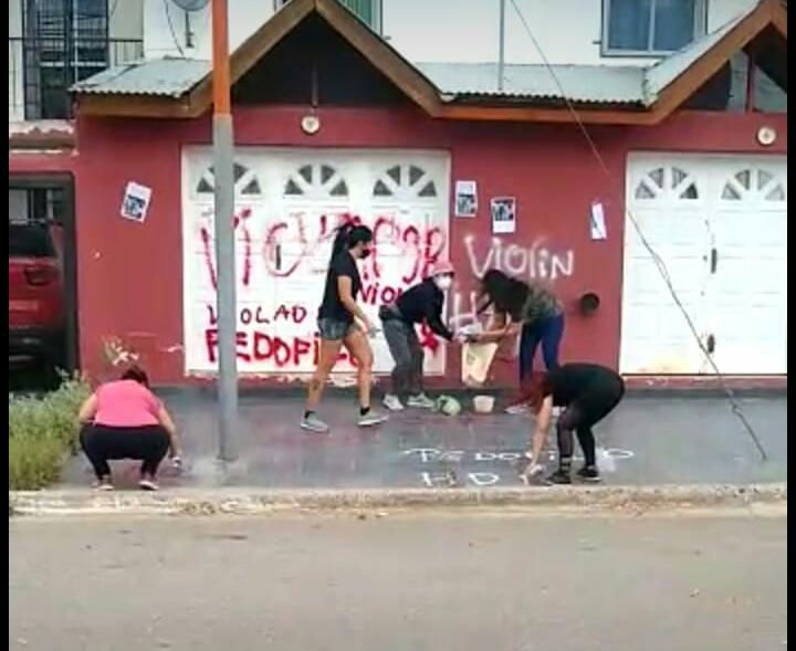 La situación comenzó ayer por la tarde; alrededor de las 16, cuando un grupo de personas (en su mayoría mujeres) llegaron al lugar y comenzaron a realizar pintadas sobre el frente de la vivienda, identificándolo “pedófilo” y “violador” con pintadas de aerosol y afiches pegados en las paredes.