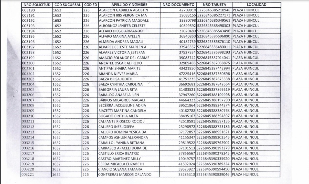 La entrega de la Tarjeta Alimentar en Plaza Huincul se iniciará el próximo martes 10 de noviembre.