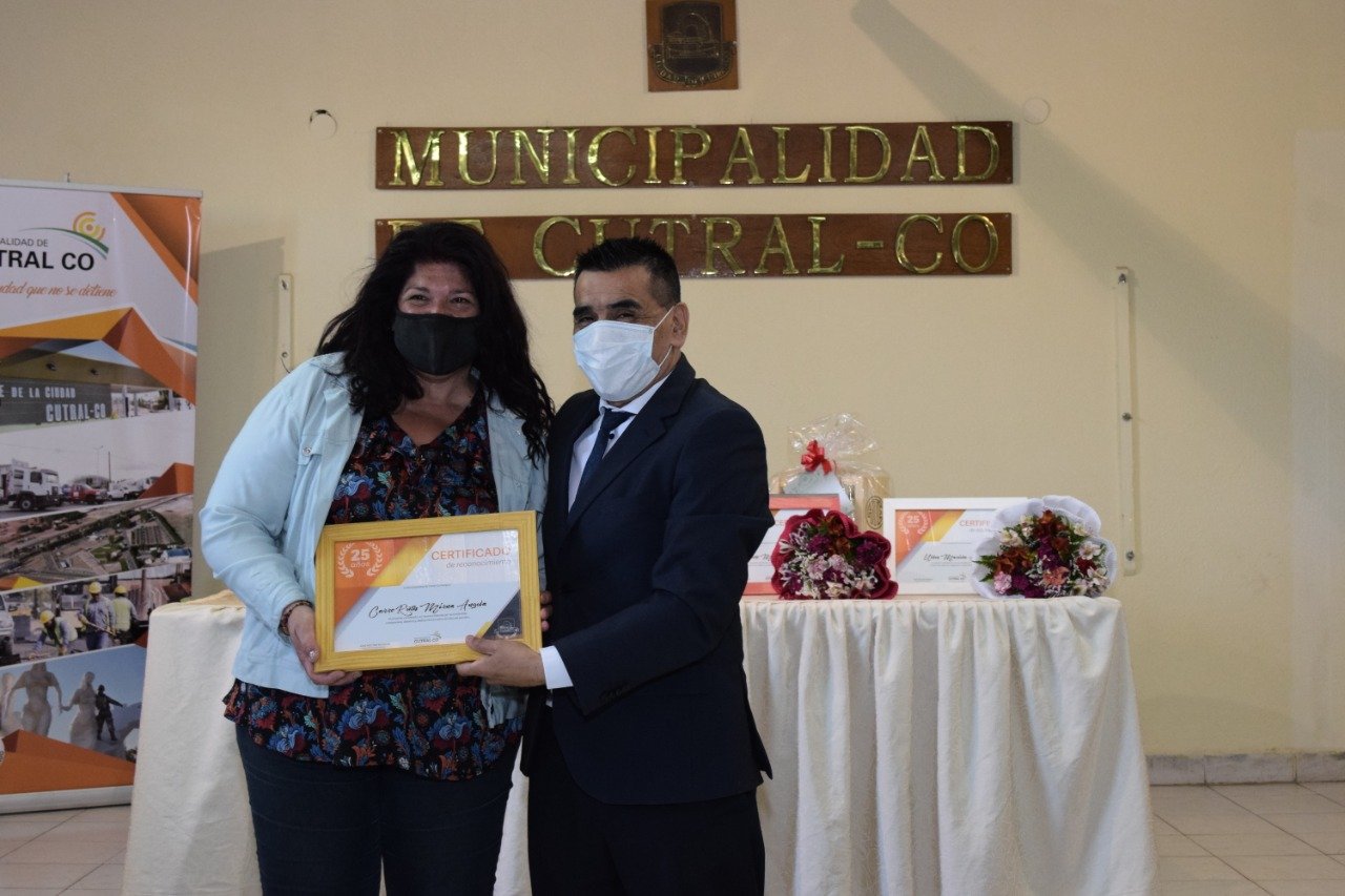 El intendente felicitó a quienes cumplieron 25 de servicio en la municipalidad. “Un enorme agradecimiento a ellos y a sus familias por acompañarlos. Y decirles que queda mucho por hacer, pero sabemos lo vamos a lograr por la voluntad que ellos le ponen. Pues son quienes hacen posible el crecimiento de Cutral Co”, finalizó.