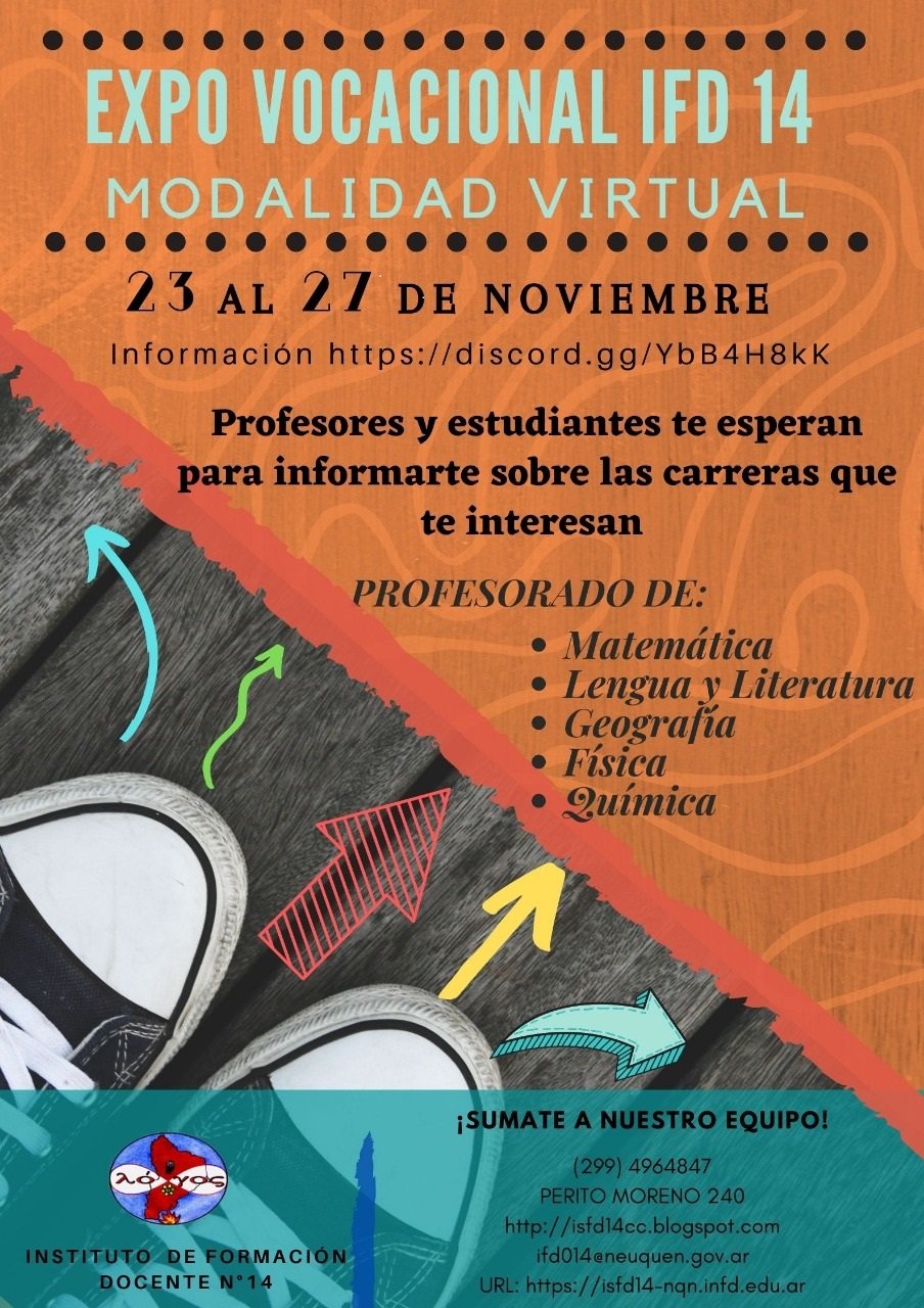 Desde el Instituto de Formación Docente Nº 14 de Cutral Co se invita a participar de la Expo Vocacional Virtual. Será desde el 23 al 27 de noviembre.