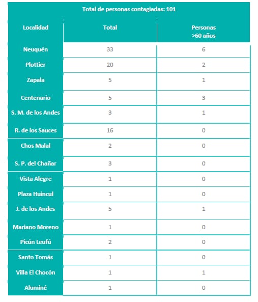 Ademas se informaron 16 casos en Rincon de Los Sauces y 1 en Picun Leufu.