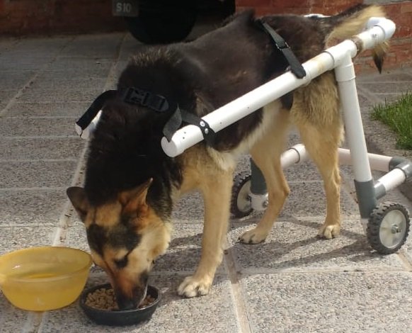 Sin embargo, el proceso es lento y Negrita continuaba arrastrándose, fue así que Sebastián buscó otra manera de ayudar y la encontró en internet. “Estuve mirando unos videos de cómo hacerle un carro. Lo hicimos con mi señora y caños de PVC y unas rueditas de esos carritos para las compras”, admitió.