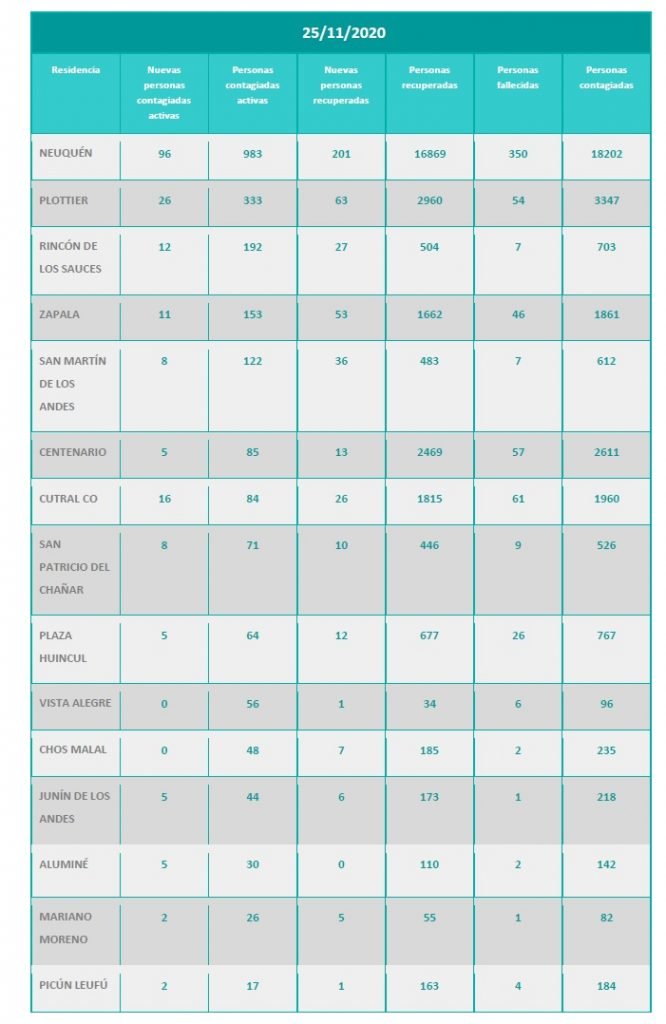 Además hubo 26 personas recuperadas en Cutral Co y 12 en Plaza Huincul. Por ello descendieron los casos activos, tras varios días de que la cifra fuera en aumento.