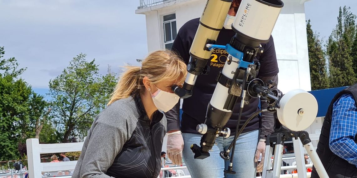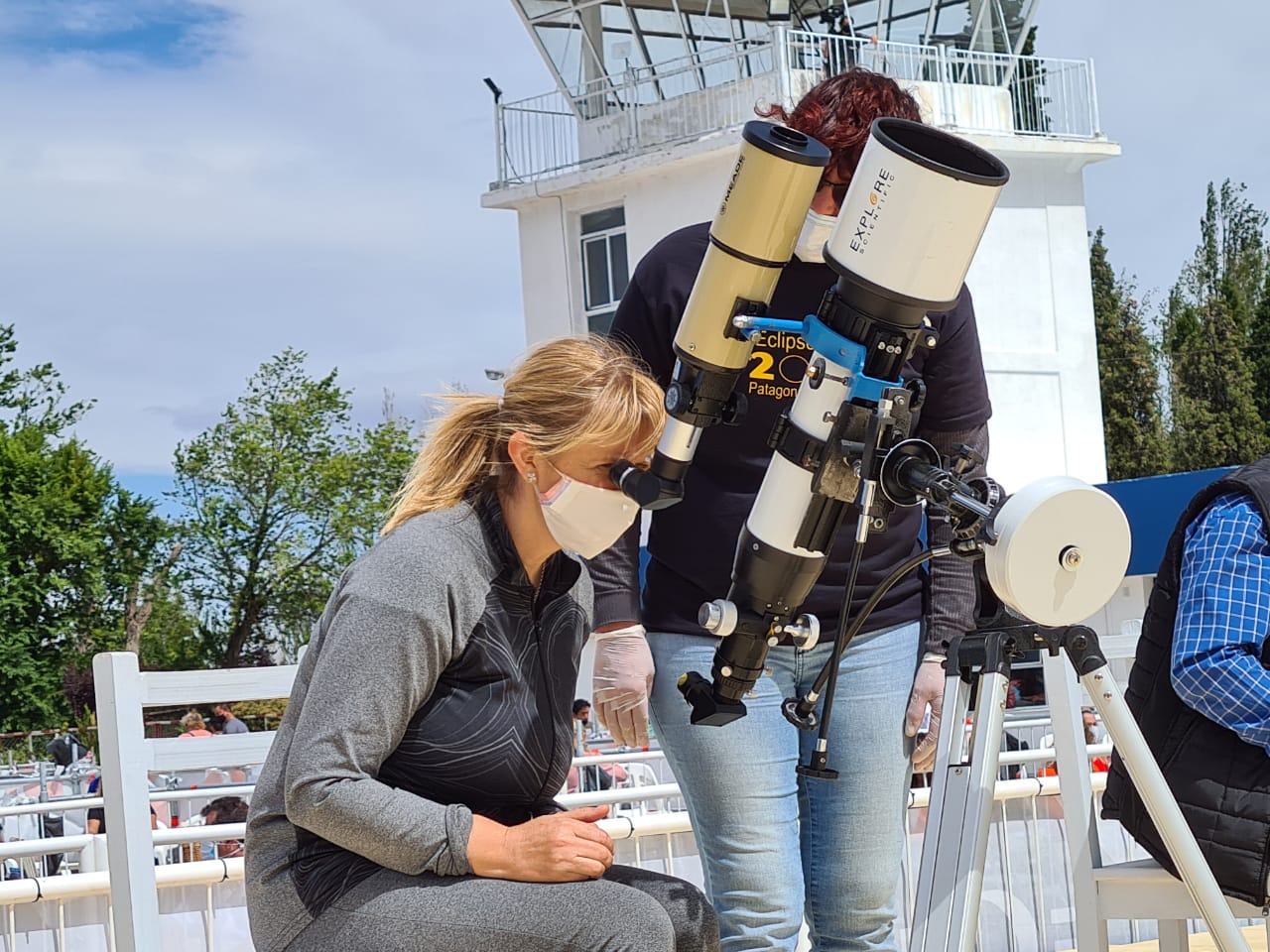 Allí colocaron dos telescopios, monitoreados por el astrónomo Roberto Figueroa y el equipo del Observatorio de Neuquén. Alrededor, realizaron un vallado para mantener el distanciamiento social entre los grupos familiares que se acercaron al parque.