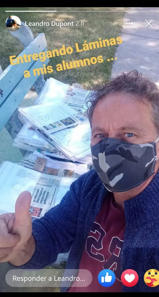 Dupont realizó distintas publicaciones en sus redes sociales a modo de incentivo y reconocimiento para sus estudiantes. “A pesar de esta situación nueva, la mayoría le pone todo lo que puede para estar presentes en mis clases por whatsapp, teniendo que conectarse a las 8 AM y poniendo lo que pueden de si mismos”, posteó junto a las láminas de los alumnos 1B, 1F, 1G, 1H, 2B, 2E, 2F, 3E y 3F.