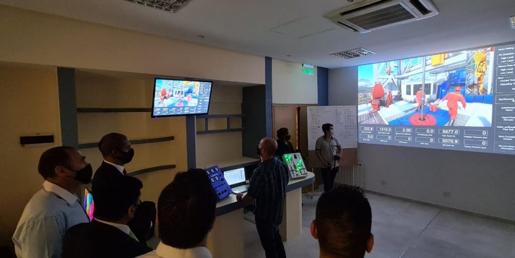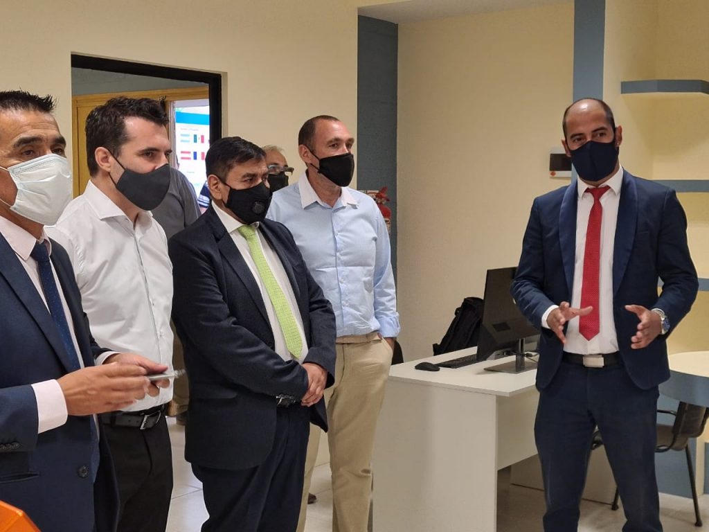 Los funcionarios realizaron un recorrido y fue el secretario de Saneamiento y Desarrollo Industrial, Walter Mardones, el encargado de conducir a los diferentes sectores del parque tecnológico. El primer punto de la recorrida fue el simulador de operación del pozo petrolero que permite la capacitación para el personal de la industria.