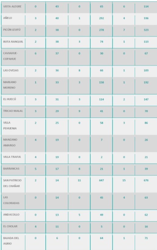 En tanto, el comité de emergencia provincial indicó que hay diez personas recuperadas, seis de las cuales son cutralquenses y cuatro huinculenses.