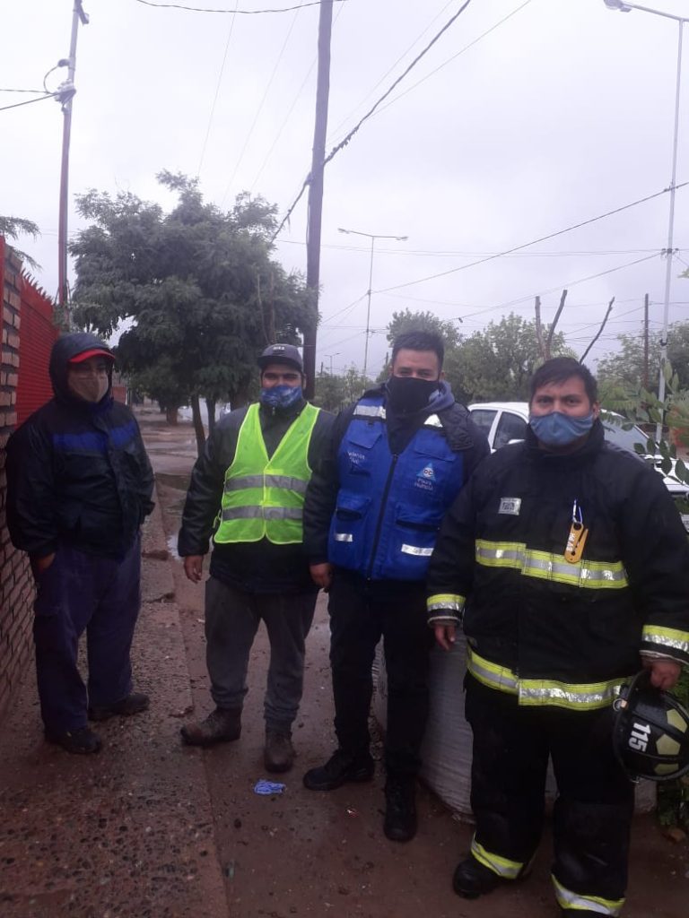 En Plaza Huincul se realiza una tarea similar, coordinados desde Defensa Civil. Se trabajó también con el anegamiento de calles en diferentes