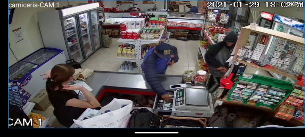 El robo ocurrió el fin de semana en una carnicería de calle Los Cipreses del barrio 25 de Mayo. En las imágenes se ve una moto y dos delincuentes que, según vecinos, están involucrados en otros delitos de la zona.