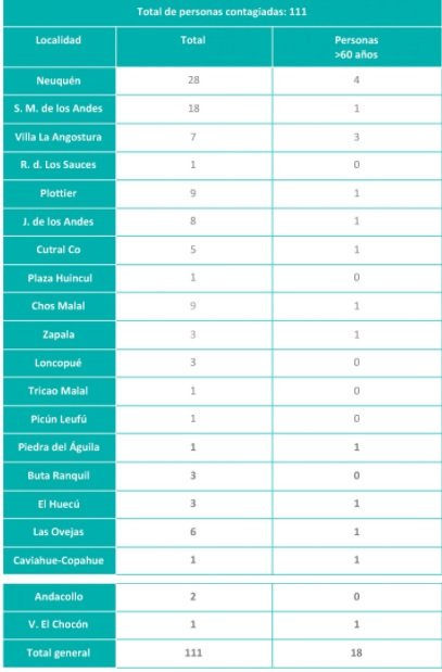 Se trata de cinco casos de Cutral Co y uno de Plaza Huincul. Mientras que el total de casos en la provincia es de 111 nuevas personas contagiadas de coronavirus.