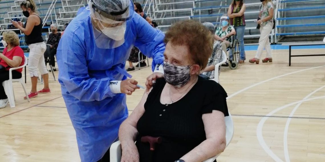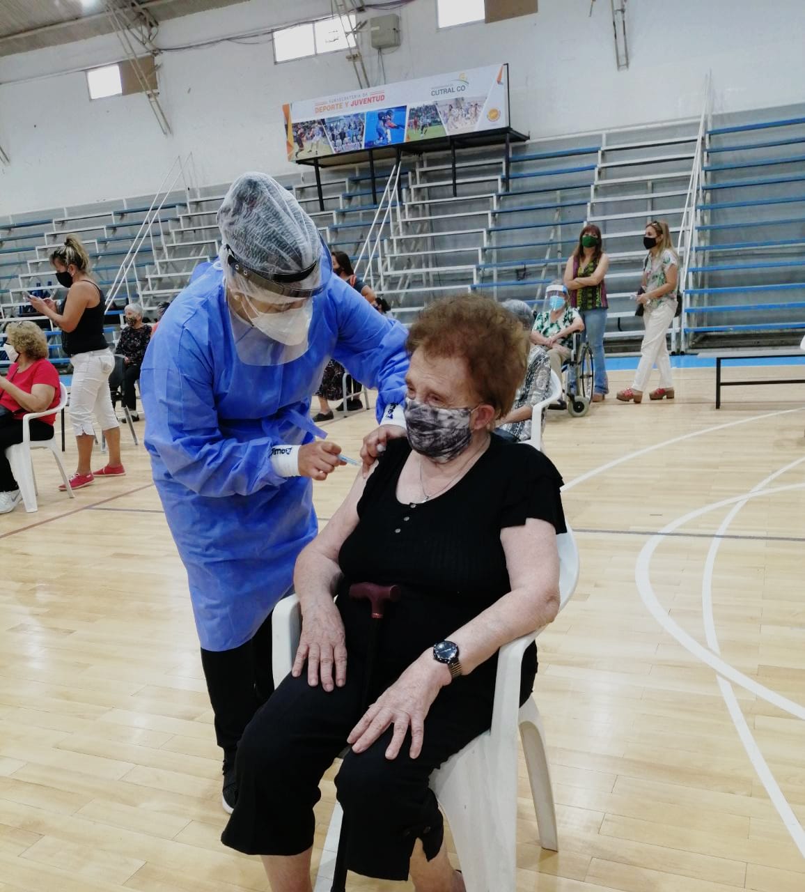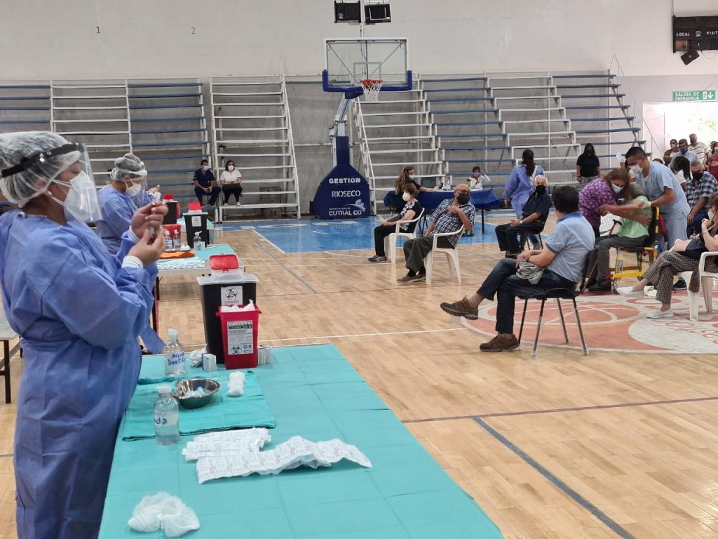 Esta mañana, en el gimnasio municipal “Enrique Mosconi” de Cutral Co se inició la vacunación para las y los adultos mayores de 80 años, en adelante.