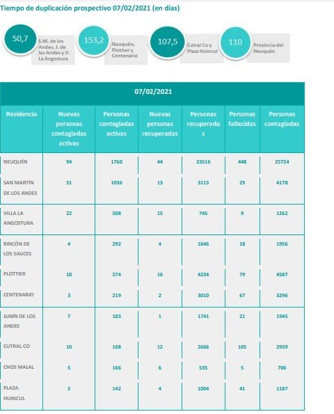 En total fueron seis (6) personas de la provincia del Neuquén que fallecieron por Coronavirus (COVID-19): 2 personas de Cutral Co, 2 personas de Plottier, 1 persona de Junín de los Andes y 1 persona de la ciudad de Neuquén.