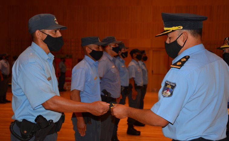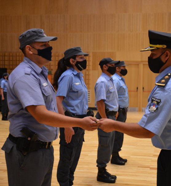 Una vez finalizados los himnos Nacional y Provincial, se efectivizó la entrega de jerarquías a los flamantes ascendidos. Luego de ellos tomó la palabra el Comisario Inspector Claudio Vinet, quien valoró el compromiso y sacrificio de los efectivos, teniendo como objetivo el bienestar de la sociedad.