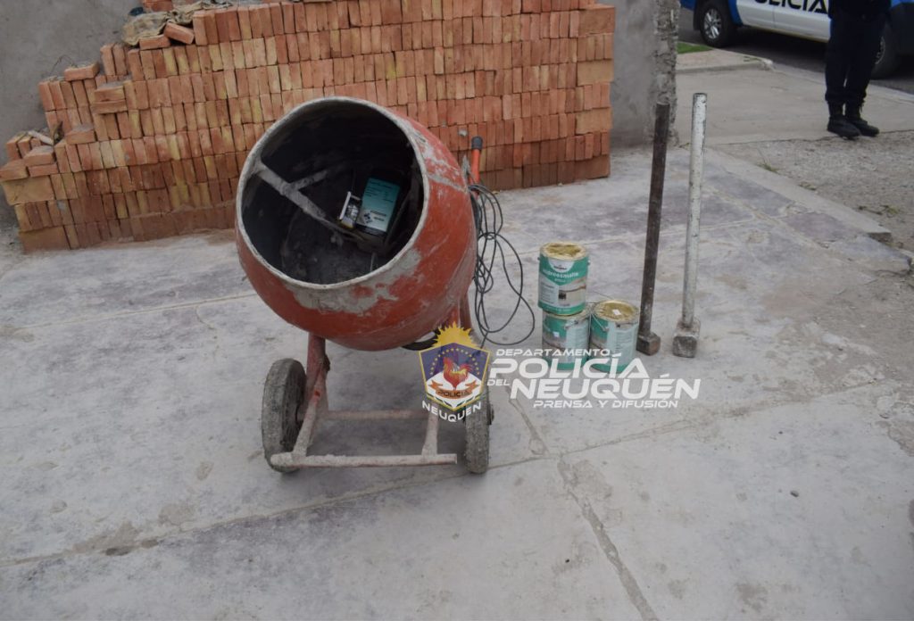 A pocos metros, dentro del canal colector, lograron atraparlo en su bicicleta y portando una hormigonera de color naranja, un alargue de 20 metros, cuatro latas de pintura, una masa de 5 kg y una batidora.