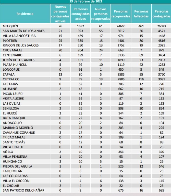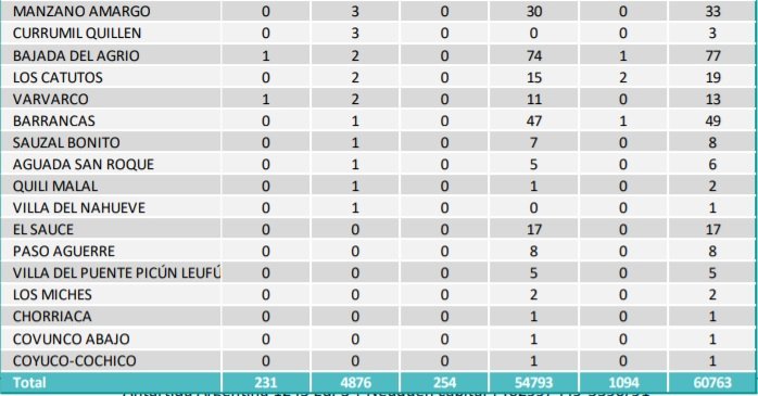 Se informó nueve casos de Cutral Co y cinco de Plaza Huincul. Y se reportaron cinco personas fallecidas, dos de las cuales corresponden a Cutral Co, teniendo en cuenta las cifras comparadas con la jornada del jueves.