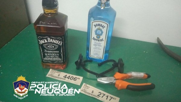 El robo fue en la modalidad de mechero. Entre sus ropas tenía una botella de whisky marca Jack Daniel’s valuada en $4406; y una botella de ginebra Bombay Sapphire por un valor de $2717.