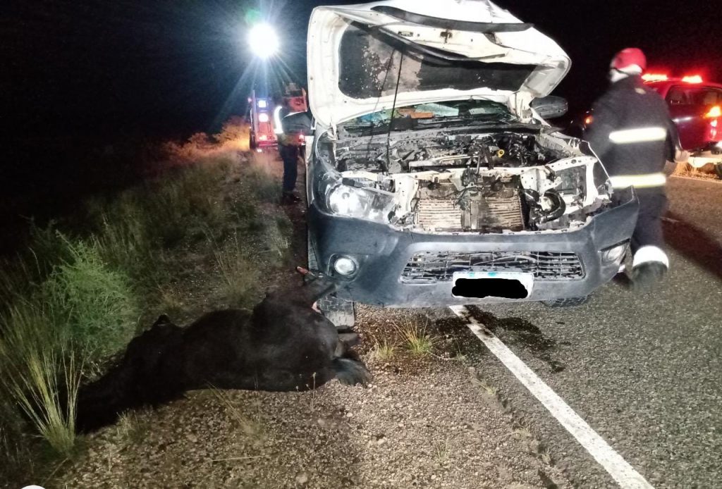 A pesar del fuerte impacto, las personas que estaban en el habitáculo no sufrieron heridas consideradas de gravedad. Una vez más los animales sueltos en las rutas provocaron un siniestro vial.