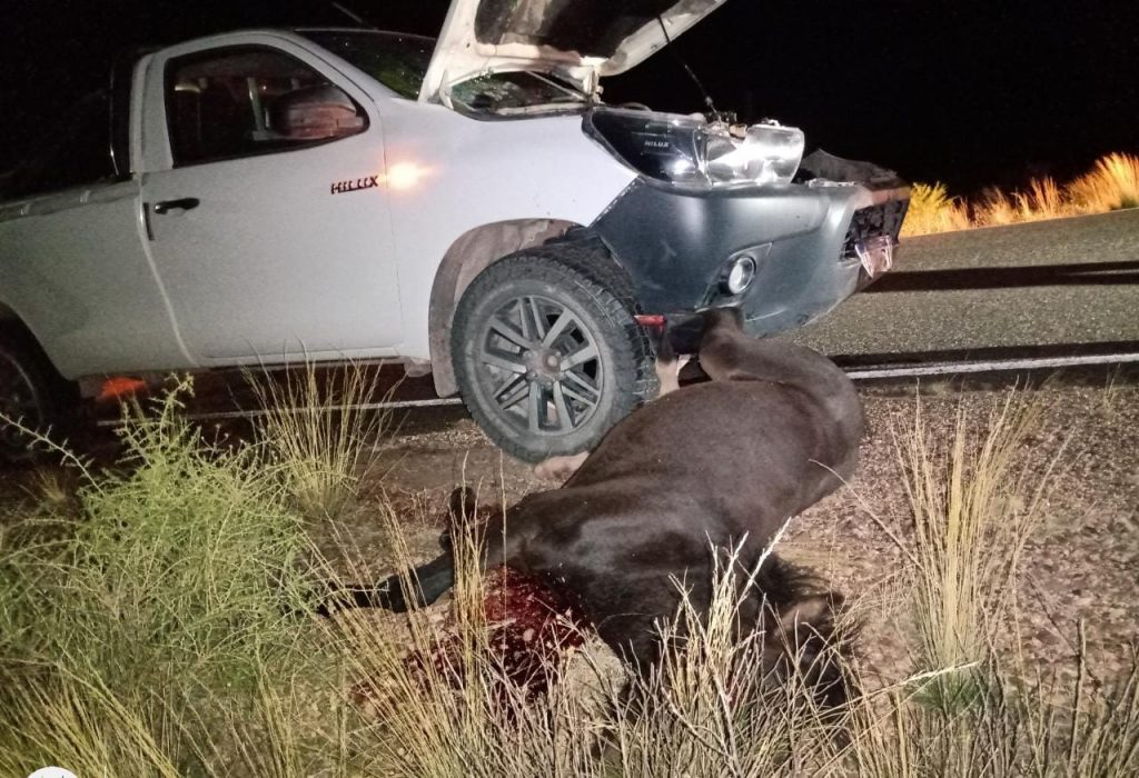 Una camioneta que se desplazaba por la ruta provincial Nº 17, a la altura de Barda González chocó contra un caballo que intentaba atravesar la vía provincial. Los ocupantes del vehículo sufrieron lesiones que no son de gravedad.