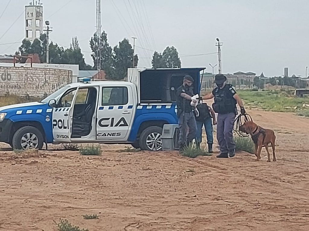 El operativo cerrojo para ubicar a Gutiérrez y Vielma será apoyado con la división Canes de Neuquén. Esta mañana llegaron dos perros policías para reforzar el rastrillaje.