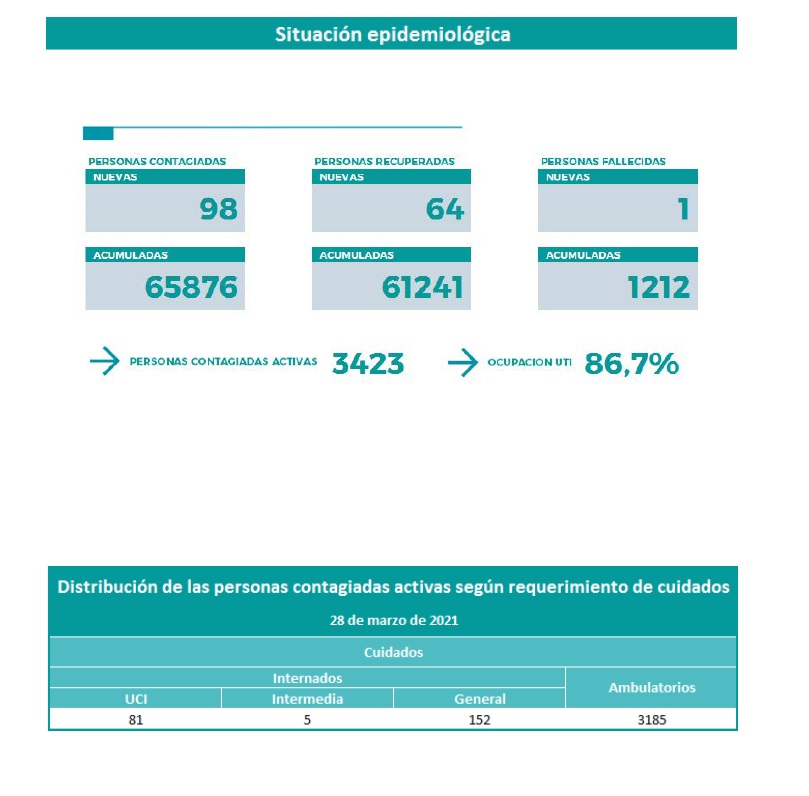 En la provincia, los nuevos contagios son 98 y una persona fallecida.