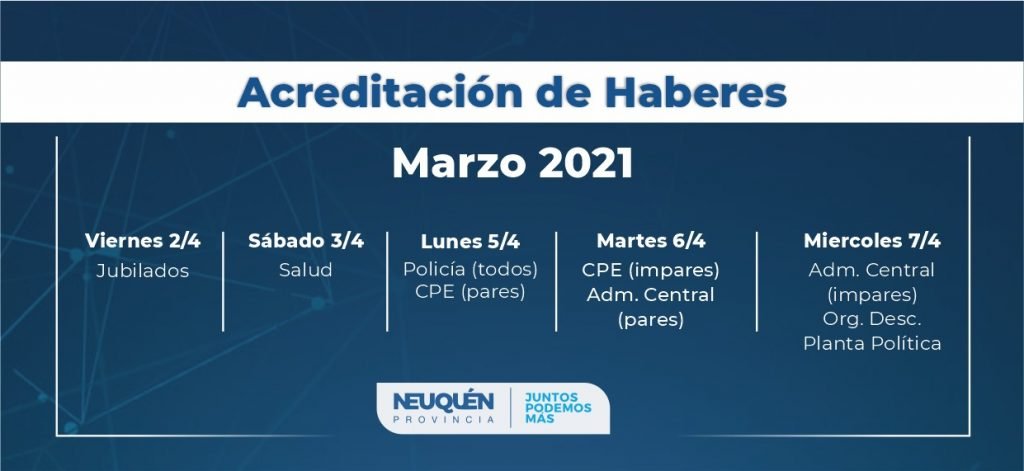 Fue anunciado el cronograma de cobro para los agentes provinciales y se iniciará como es habitual con los jubilados y jubiladas que percibirán sus haberes el viernes 2 de abril.