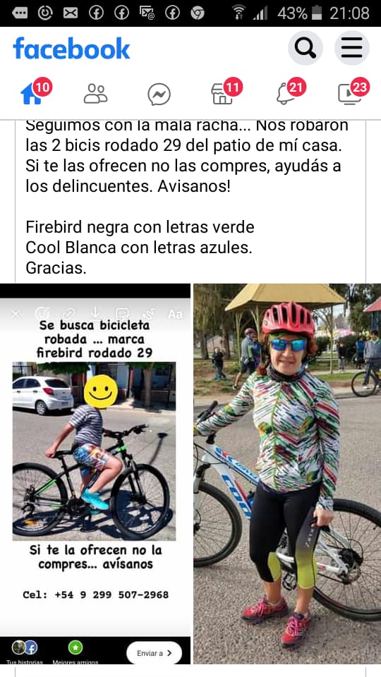 La publicación de Facebook está acompañada por las fotos para ayudar a reconocer las bicicletas. La familia damnificada contó que las sacaron del patio de su casa y remarcaron “si te las ofrecen no las compres, ayudás a los delinciuentes”.