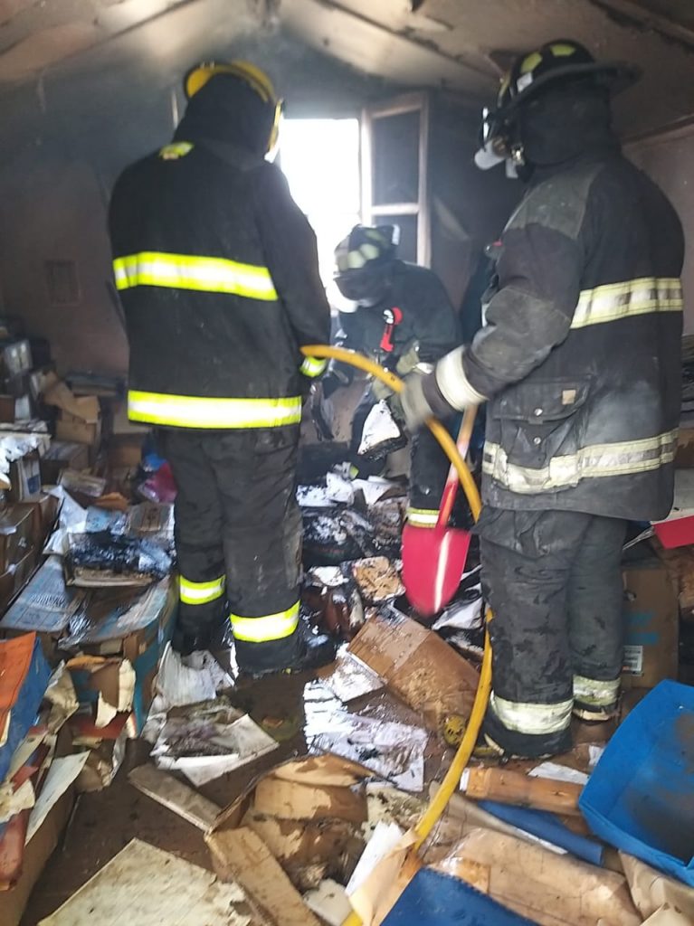Bomberos de la ciudad trabajaron para sofocar las llamas, pero no fue posible evitar los daños en los materiales, ya que gran parte estaba en papel que ardió rápidamente.