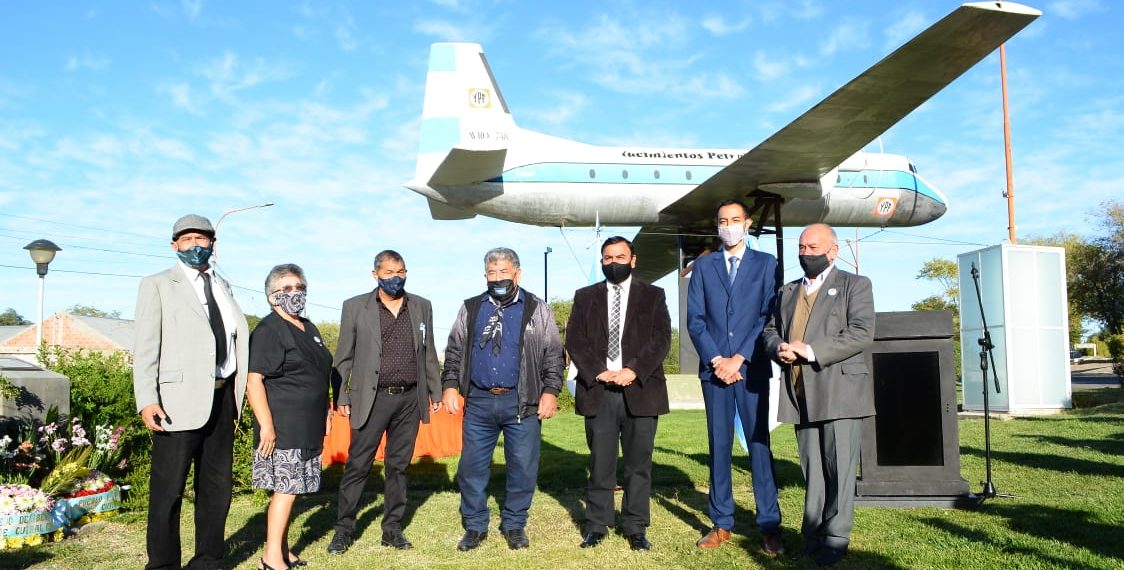 El acto estuvo seguido por un minuto de silencio y entrega de ofrendas florales por parte de autoridades y de veteranos Ypefianos, de la que también participó la concejal Mabel Durán, hija de uno de los obreros fallecidos en la tragedia.