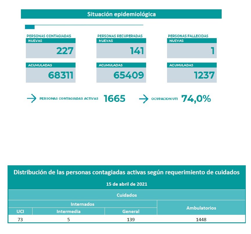 En la provincia, son 227 los casos confirmados mientras que se reportó 1 persona fallecida.