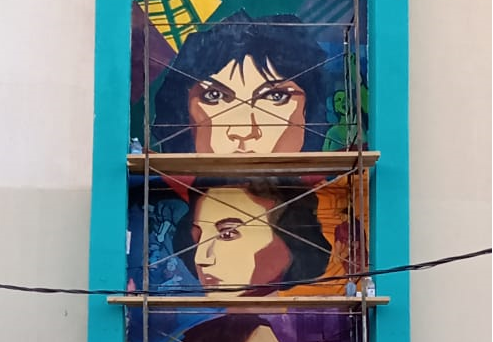La artista a cargo, Claudia Delgado, se encuentra participando de un concurso nacional de muralismo propuesto por el Ministerio de Cultura de la Nación.